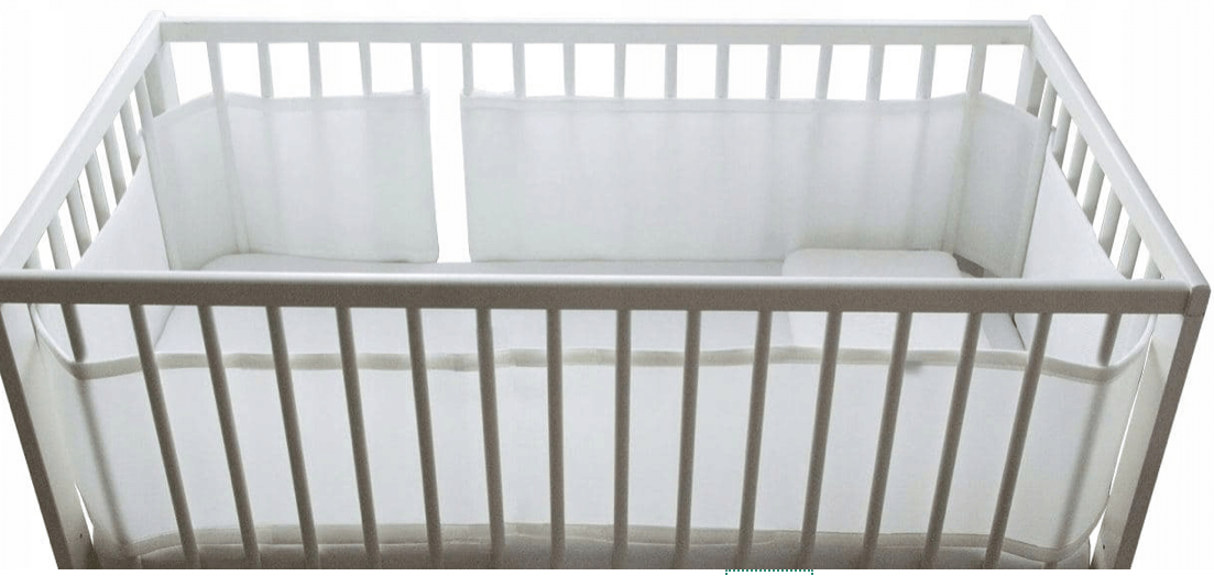 Baby Cot Bumper Half Length installed in a modern white crib, designed for safety and comfort.