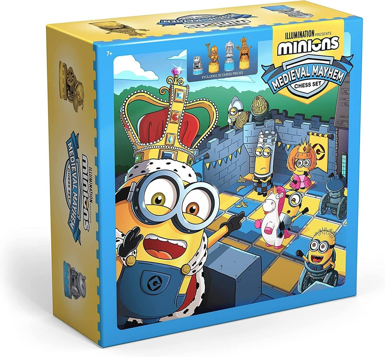 The Minions ‘Medieval Mayhem’ Chess Set features custom-sculpted Minions characters as the chess pieces. Imagine King Bob leading his Minion army, while other familiar faces take on roles like knights, bishops, rooks, and pawns! Each piece is vibrantly coloured and highly detailed, making every move a delight. The game board itself is themed to match, creating a truly immersive “medieval mayhem” experience.